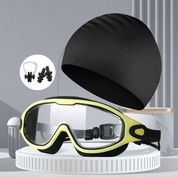 ชุดหมวกว่ายน้ำสำหรับผู้ใหญ่แว่นตาป้องกันหมอกกันน้ำความละเอียดสูง